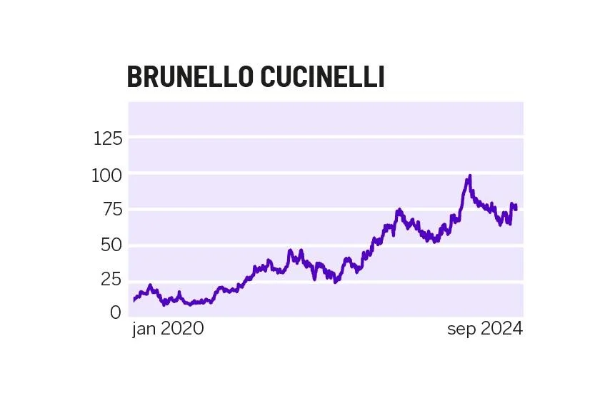 Brunello Cucinelli noteert rond de 94 euro op de beurs in Milaan.