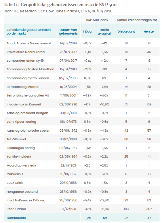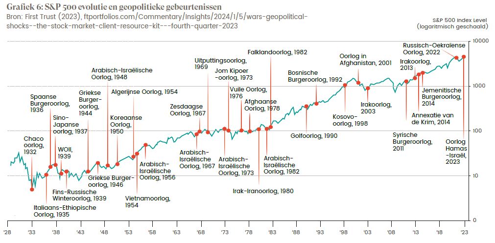 Geopolitieke conflicten kunnen leiden tot marktnervositeit en kortdurende beurscorrecties, maar historisch gezien herstellen de markten zich vaak na verloop van tijd.